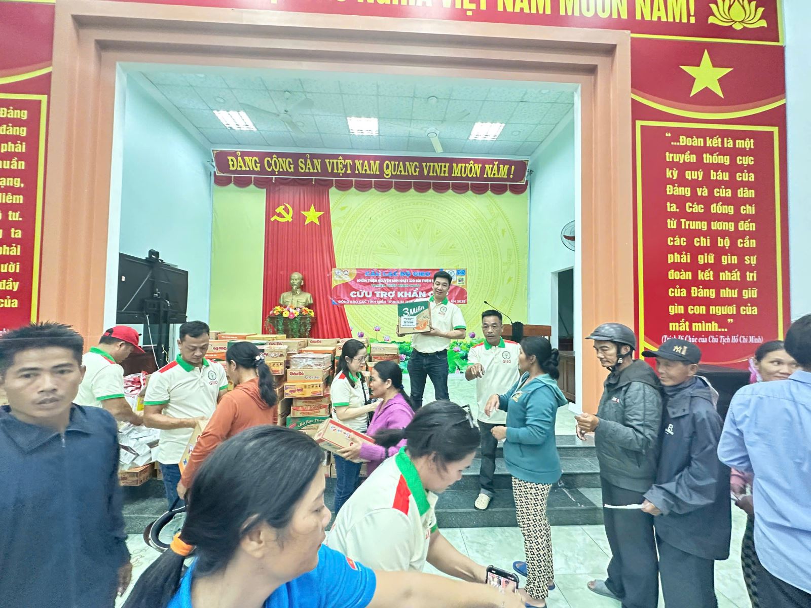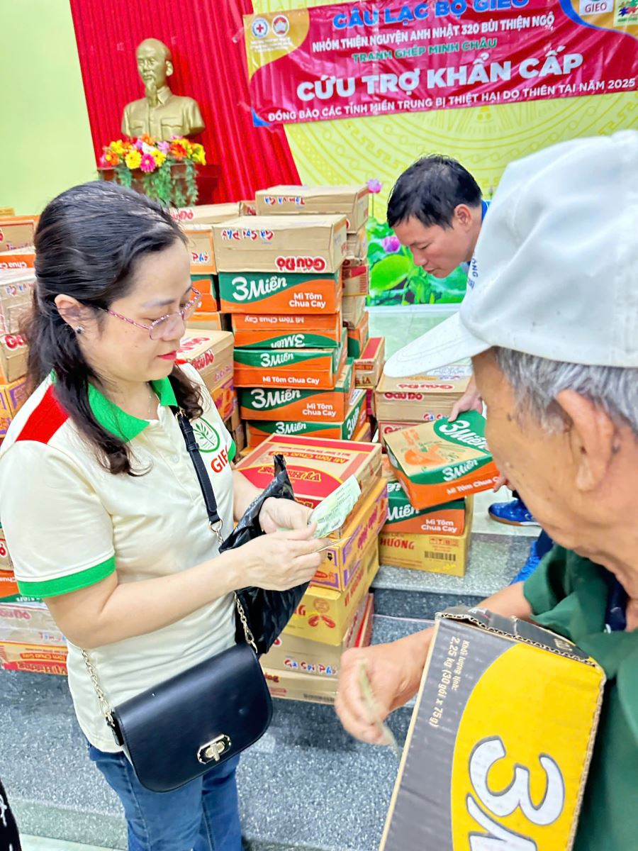 hành trình cho chuyến cứu trợ tại Phù Mỹ Đông, Bình Định: 9;Hành trình GIEO yêu thương tại Phù Mỹ Đông – Bình Định (18–21/11/2025) Có những chuyến đi không chỉ mang theo quà – mà mang theo cả những nhịp đập của trái tim. Ngày 18/11, CLB GIEO, Nhóm Thiện Nguyện Anh Nhật và Tranh Ghép Minh Châu xuất phát từ Vũng Tàu trong mưa gió nặng hạt, hướng về Phù Mỹ Đông để mang 250 suất quà đến tận tay bà con vùng lũ. Mỗi suất gồm 300.000đ tiền mặt, mì gói, lương khô, thuốc cảm – sốt và bánh kẹo. Trên đường đi, bánh xe bất ngờ nổ giữa trời còn tối. Mọi người cùng nhau thay lốp, ai nấy tay lạnh tê nhưng lòng thì chỉ mong kịp đến với bà con. Đến Tuy Hòa, mưa đổ trắng trời khiến cả đoàn thấp thỏm. Nhờ sự hỗ trợ của anh chị em địa phương, đoàn đến được Cát Hanh rồi tiến về Phù Mỹ Đông đúng 18 giờ. Một hình ảnh khiến chúng tôi không bao giờ quên: người chị Bình Định – bạn của một thành viên trong đoàn – đứng đợi gần một giờ giữa gió mưa lạnh buốt, tay cầm chiếc dù nhỏ xíu, chỉ để trao vài chục ổ bánh mì tiếp tế cho đoàn. Giữa mùa bão lũ, tình người thật ấm. Khi vào đến xã, chúng tôi thấy 250 bà con đã ngồi chờ mình hơn 3 giờ đồng hồ. Dù ai cũng chịu nhiều mất mát, không một ai than trách. Ánh mắt bà con khiến chúng tôi chỉ muốn ôm lấy họ mà khóc. Những phần quà được trao đi, nhẹ nhàng nhưng trọn vẹn sự sẻ chia. 🌧 Hành trình trở về – thêm một lần thử thách Đêm mưa trắng trời.